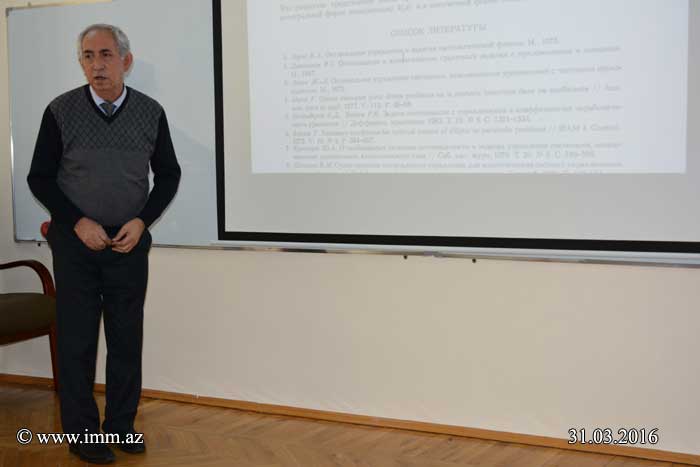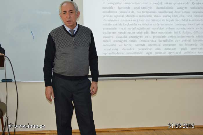 Bu gün saat 11.00-da «Optimal idarəetmə» şöbəsinin beşinci seminarı keçirilib. Seminarda BDU-nun professoru Rafiq Tağıyev «ELLİPTİK TƏNLİKLƏRİN ƏMSALLARI İLƏ OPTİMAL İDARƏETMƏ MƏSƏLƏLƏRİ» mövzusunda məruzə edib.