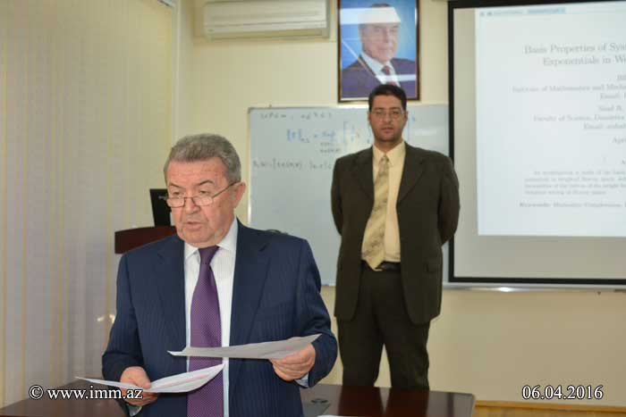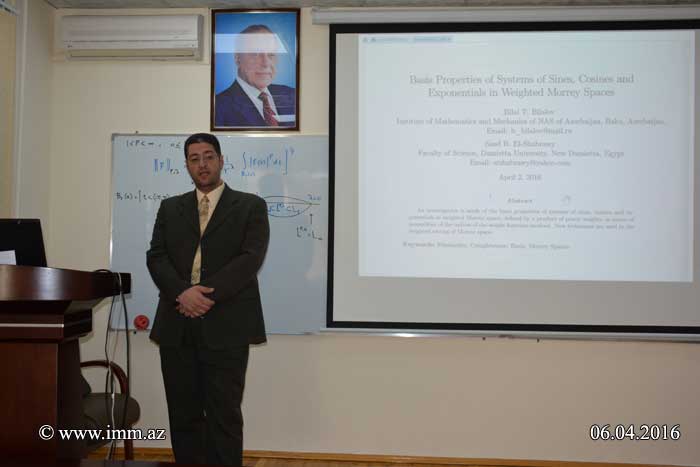 Then, teacher of Mathematics of Damietta University of Misir Arabian Republic Said El-Shabravi gave a talk on “Basicity properties of cosine, sine and exponent systems in weighted Morrey-type spaces.