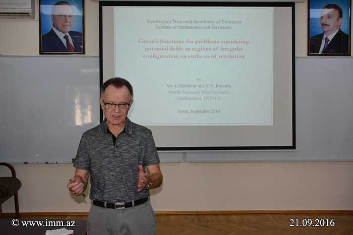 Bu gün Ümuminstitut seminarında ADA Universitetinin professoru Yuri Melnikov “Qrin funksiyaları. Səthlərdə potensial sahələr” mövzusunda məruzə edib.