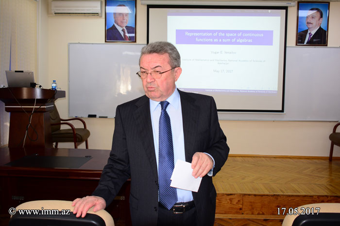 Today, at the institute seminar, head of “Functions Theory” department of IMM, doctor of math.sci. Vugar Elman oglu Ismayilov gave a talk on “Representation of the space of continuous functions as a sum of algebras”