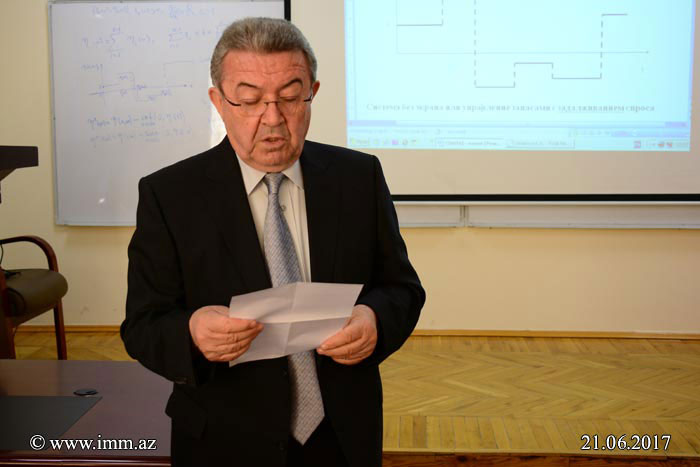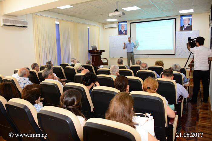 Bu gün  Ümuminstitut seminarında “Riyazi analiz” şöbəsinin baş elmi işçisi, r.e.d., dos. Rövşən Bəndəliyevin və AMEA İdarəetmə Sistemləri İnstitutunun “İdarəetmənin ehtimal üsulları” laboratoriyasının müdiri, f.-r.e.d., prof. Tamilla Nəsirovanın “Gecikdirilən ekranlı bir semi-markov dolaşma prosesinin kəsr tərtibli və sabit əmsallı adi diferensial tənliklə təsviri” mövzusunda birgə məruzələri olub.