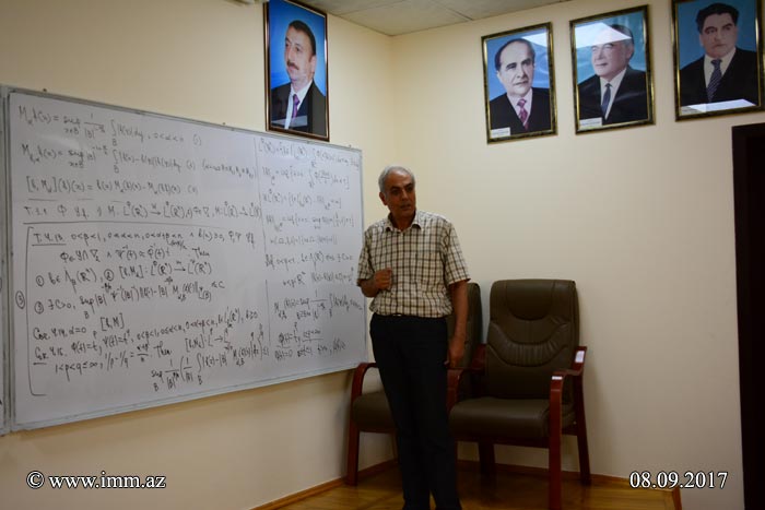 On 08.09.2017, at 11:00 a seminar of “Mathematical Analysis” department “Modern problems of harmonic analysis and applications” was held. At the dissertant of the department Hasanov Sabir Gahraman oglu was a talkon “Fractional maximal operator and its commutator on Orlicz spaces “.
