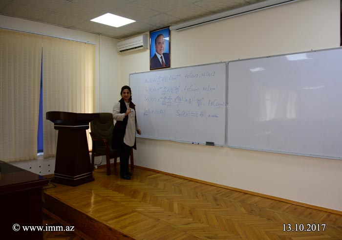 On 13.10.2017, at 11:00 a seminar of “Mathematical Analysis” department “Modern problems of harmonic analysis and applications” was held. At the seminar the was report Aynur Nizami kizi Mamedova “Approximation theorems for generalized Szasz operator”.