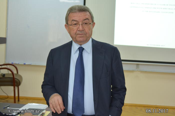 Then the heads of the “Optimal Control”, “Education”, “Mathematical Physics Equations”, corr. member of ANAS prof. Bilal Bilalov, prof. Latif Talybly, corr. member of ANAS prof. Misir Mardanov, prof. Adalat Akhundov gave reports on the activity of their departments in 2017.