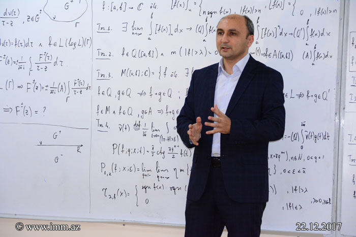 At the Dissertation Council of IMM conferring the acad. degrees of philosophy doctor and doctor of sciences, D.01.111 Rashid Avazaga oglu Aliyev defended the doctor of sciences dissertation “Boundary properties of Cauchy type integrals of complex measures and some properties of analytic functions”, by the specialty 1202.01-analysis and functional analysis. The results of the work were reflected in 28 works.