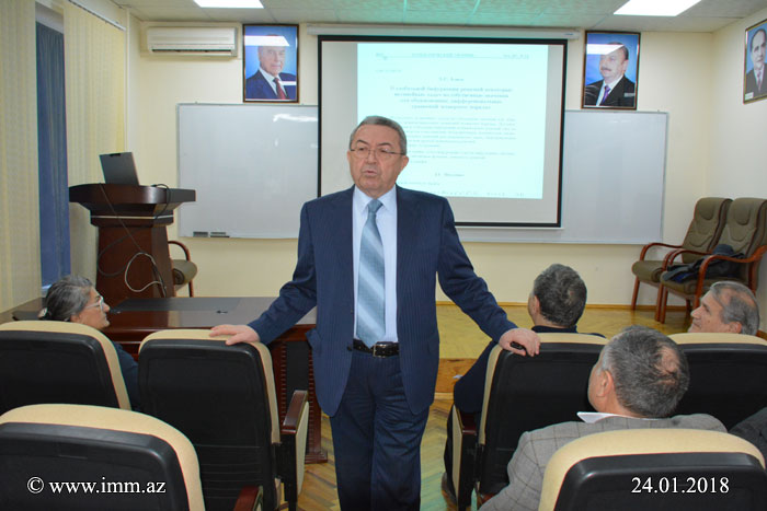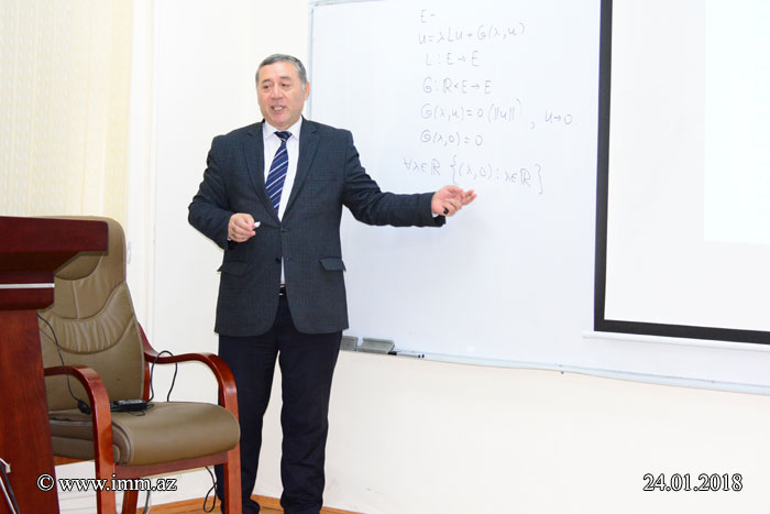 Today, Institute of Mathematics and Mechanics of ANAS held the Institute seminar. Senior scientific worker of “Differential Equations” department, prof. Ziyatkhan Seyfaddin oglu Aliyev made a report on “Global Bifurcation of Solutions for some Nonlinear eigen-value problems for the Fourth order ordinary Equations”.