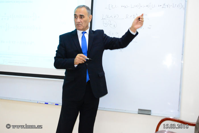 Today the “Optimal Control” department was held its regular seminar. The sen. Res. Ass. Of “Optimal Control” department, doct. of ph. math. sci., prof. Telman Melikov gave a talk on “Amplification of Weierstrass necessary condition for prime variation problem”.