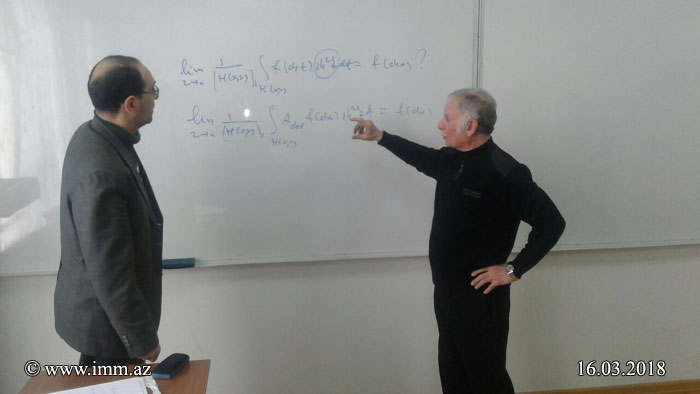 On 16.03.2018, at 11:00 the seminar of “Mathematical Analysis” department “Contemporary problems and applications of harmonic analysis” doc. lead. r. a. Elman Ibrahimov was deliver a lecture “Properties of fractional maximal function generated by Gegenbauer differential operator”. In this report consider fractional maximal functions generated by Gegenbauer differential operator and proved its Lp →Lq– boundedness.