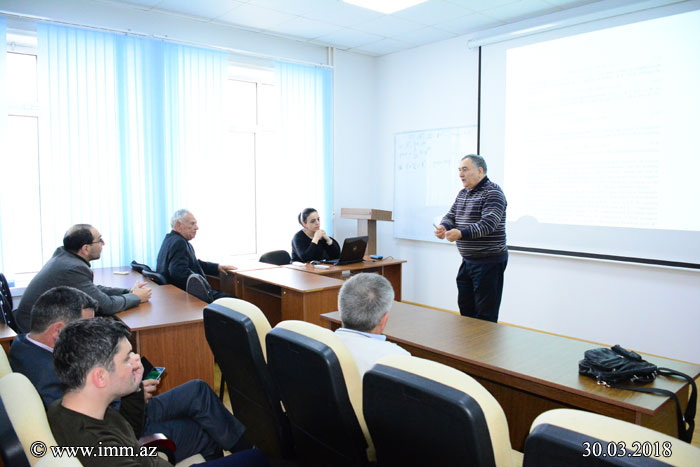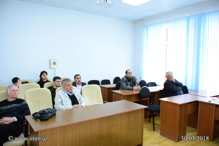 On 30.03.2018, at 11:00 a seminar of “Mathematical Analysis” department “Modern problems of harmonic analysis and applications” was held. At the seminar the head of the department, Corr. member of ANAS Vagif Sabir oglu Guliyev was give a talk on “Boundedness the fractional integral operator defined on homogeneous spaces and its commutator in the Orlicz space”.