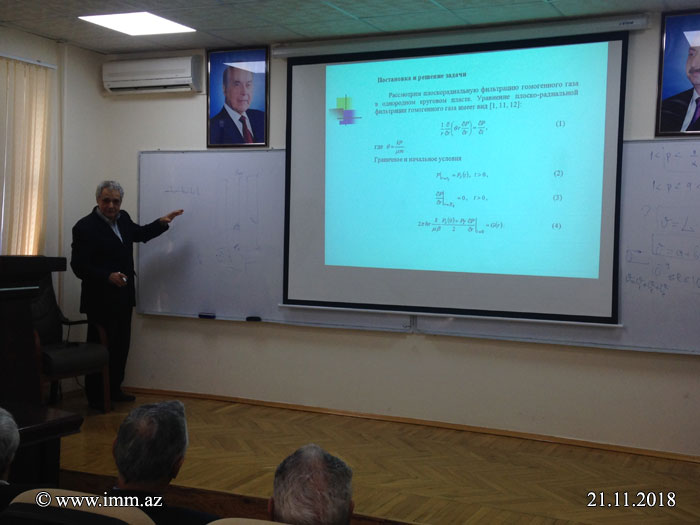On 21.11.2018 at the seminar of department “Diferensial equations” gave a talk employee of department of “Applied Mathematics” Elkhan Abbasov on “Integrated modeling of the process gas filtration”.