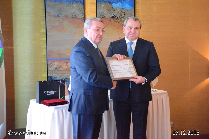 Затем были объявлены имена победителей премии «Web of Science Azerbaijan-2018». Отрадно, что Институт математики и механики был удостоен премии «Publication leader in Web of Science, ANAS», журнал Труды Института математики и механики был удостоен премии «New Journals İndexed in ESCİ of Web of Science Core Collection», а заместитель директора института по научной работе, член-корреспондент НАНА Вагиф Гулиев премии «The most productive authors in Natural Sciences».