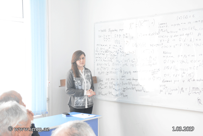 01.03.2019, at 11:00 a seminar of “Mathematical Analysis” department “Modern problems of harmonic analysis and applications” was held. At the seminar the MSc student of the department of “Mathematical Analysis” Alizade Fidan Asif kizi gave a talk “Boundedness of the fractional maximal operator in local and global Morrey-type spaces on the Heisenberg groups”.