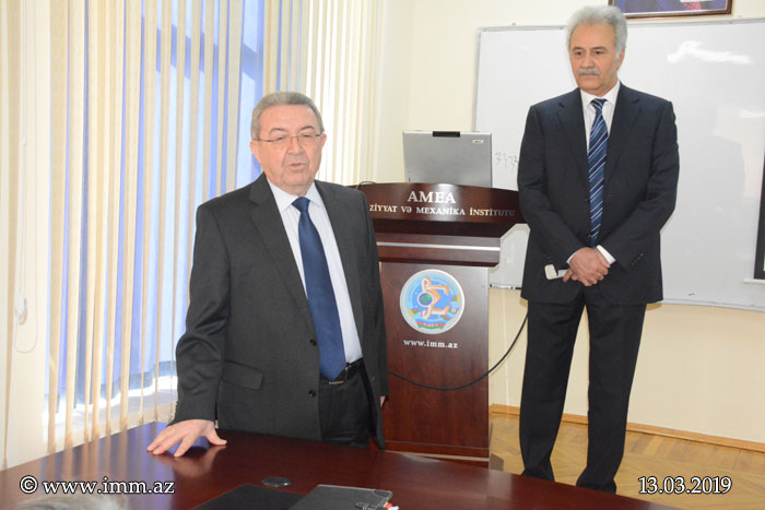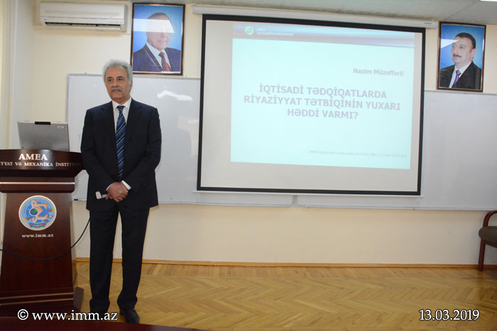 Opening the event, Director of the Institute, corresponding member of ANAS, Professor Misir Mardanov noted that the seminar was held under the Presidential Order dated 9 April 2018 on the establishment of the Science Day. The scientist also said that March 14 is one of the days that Mathematicians have celebrated. The international “Pi Day” in the world is celebrated on the 3rd of July, 3rd, 3rd. It is remarkable that the director of the Institute of Economics of ANAS, Doctor of Economic Sciences, Professor Nazim Imanov spoke at the institute’s seminar on the eve of such important days.