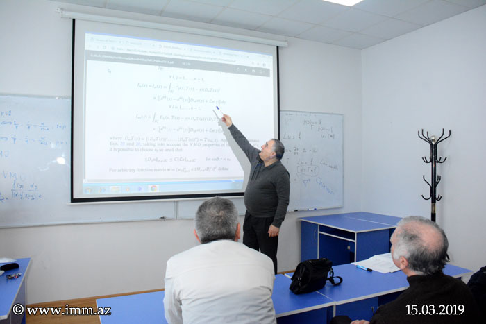 On 15.03.2019, at 11:00a seminar of “Mathematical Analysis” department “Modern problems of harmonic analysis and applications” was held. At the seminar the head of the department, Corr. member of ANAS Vagif Sabir oglu Guliyev gave a talk on “Global regularity in Orlicz-Morrey spaces of solutions to nondivergence elliptic equations with BMO coefficients”.