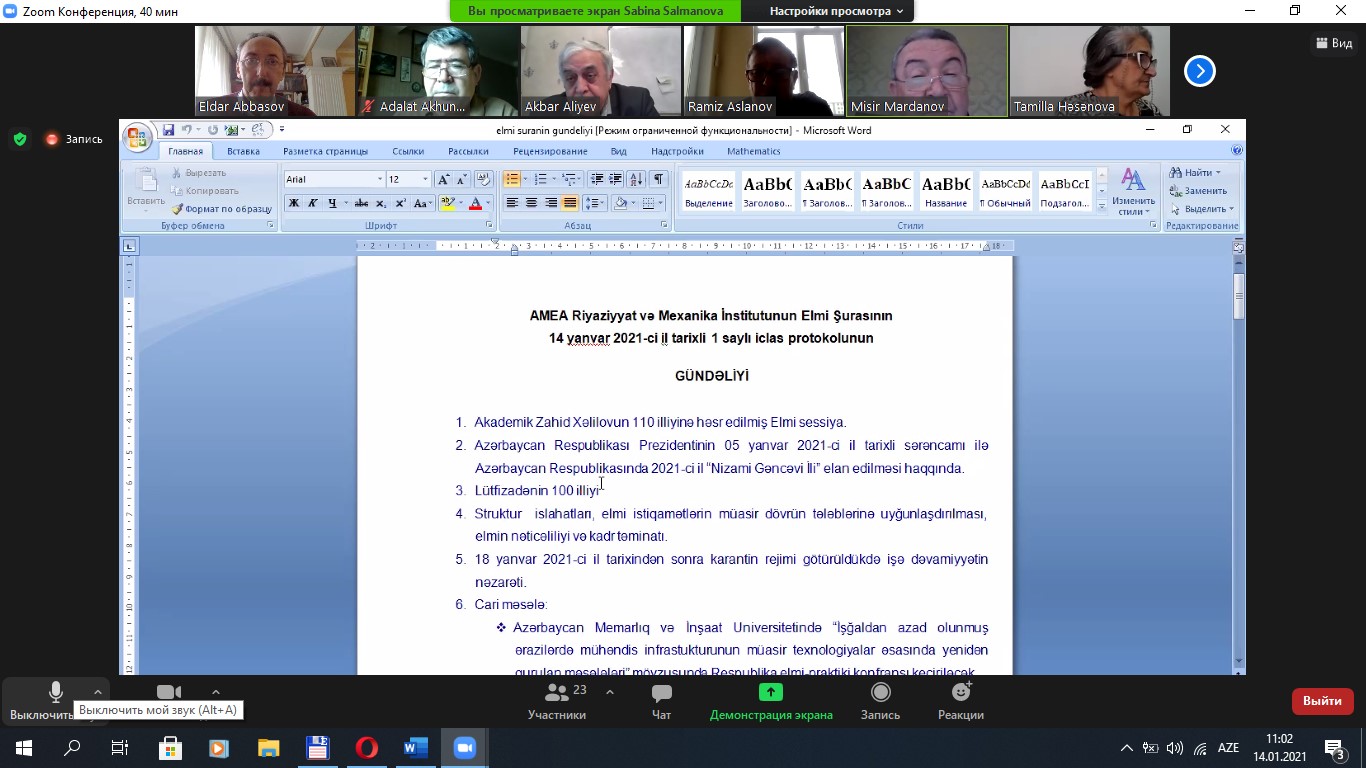 AMEA Fizika-Riyaziyyat və Texnika Elmləri Bölməsinin Ümumi yığıncağında institutların illik elmi hesabatları müzakirə edildi