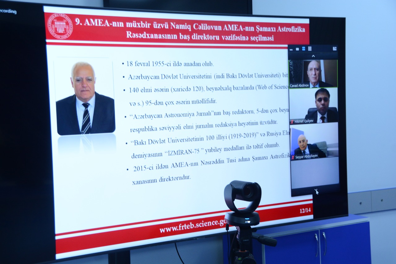 On­layn iclasda keçirilən açıq səsvermə ilə AMEA-nın müxbir üzvü Na­miq Cəlilov AMEA-nın Nəsrəddin Tusi adına Şamaxı Astrofizika Rəsədxanasının baş direktoru vəzifəsinə seçilib və təsdiq edilməsi üçün AMEA Rəyasət Heyəti qarşısında vəsatət qaldırılması barədə qərar qəbul edilib.