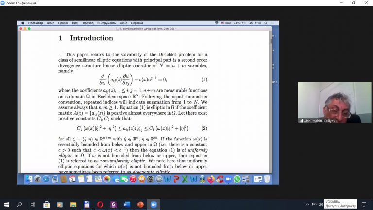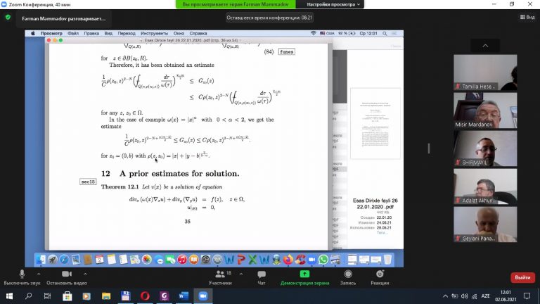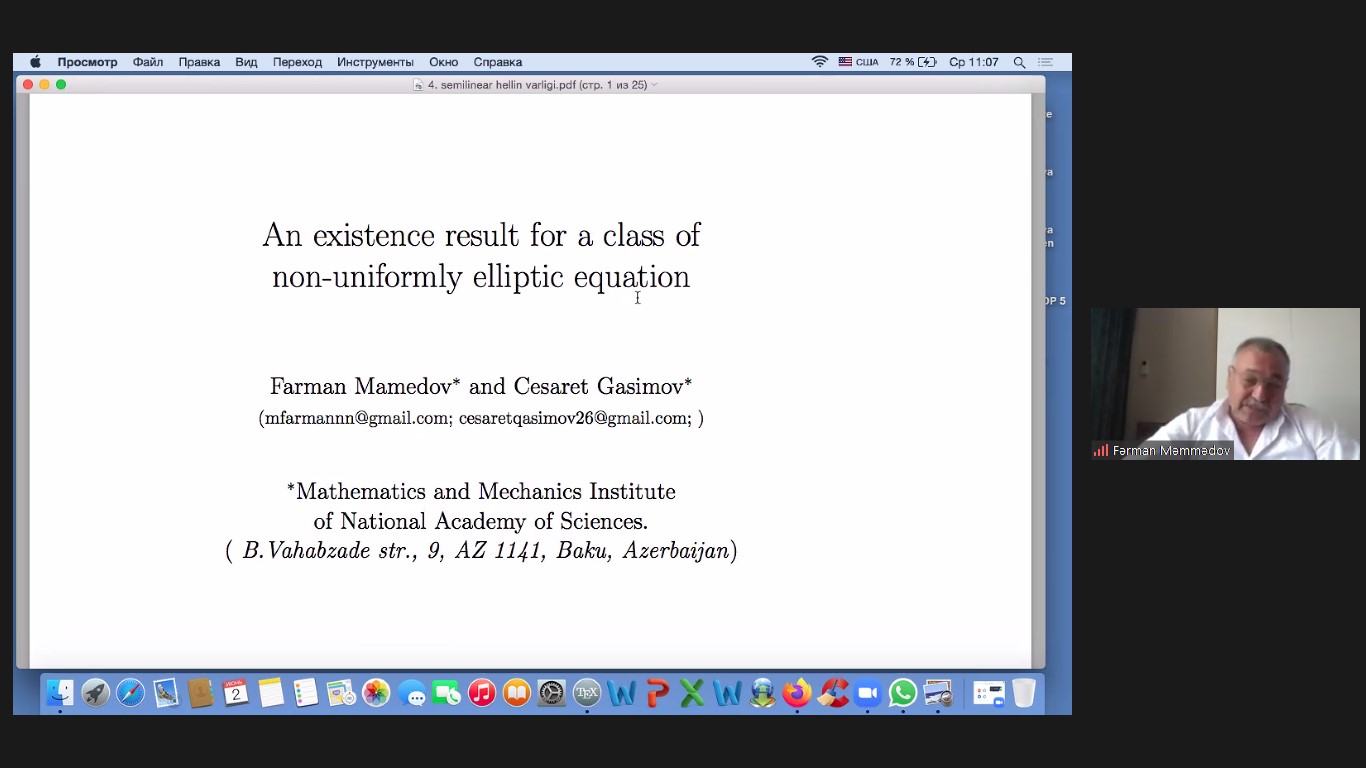 Professor Fərman Məmmədov “Bir sinif qeyri-müntəzəm cırlaşmalı elliptik tənliklər üçün müsbət həllin varlıq məsələsi” mövzusunda məruzə edib
