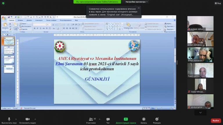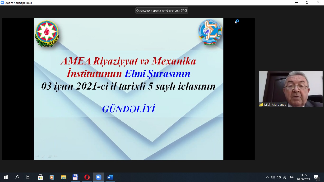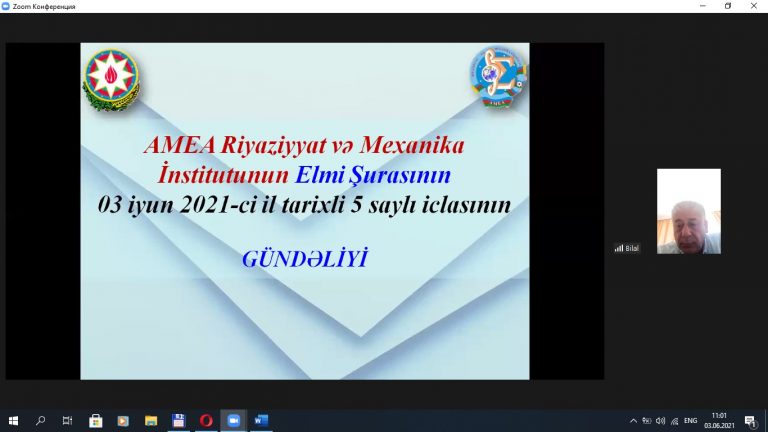 AMEA Riyaziyyat və Mexanika İnstitutunun Elmi şurasının onlayn iclası keçirilib. Tədbiri İnstitutun baş direktoru, Elmi Şuranın sədri, AMEA-nın müxbir üzvü, professor Misir Mərdanov açaraq Elmi şura üzvlərini gündəlikdəki duran məsələlərlə tanış edib. Professor Misir Mərdanov iclasda institutun əməkdaşlarına 01.07.2021-ci il tarixənə qədər vaksinasiyadan keçmələrini töfsiyyə edib.