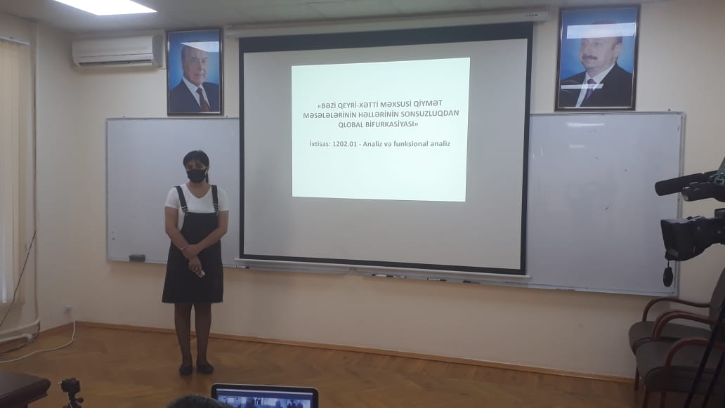 18 iyun 2021-ci il saat 11:00-da AMEA Riyaziyyat və Mexanika İnstitutunun ED 1.04 dissertasiya şurasının nəzdindəki elmlər və fəlsəfə doktoru dissertasiyalarının müzakirəsi üzrə Elmi seminarın növbəti iclası (qismən əyani eyni zamanda distant şəkildə) keçirildi. İclasda Natəvan Əmrah qızı Mustafayevanın “Bəzi qeyri-xətti məxsusi qiymət məsələlərinin həllərinin sonsuzluqdan qlobal bifurkasiyası” “Bəzi qeyri-xətti məxsusi qiymət məsələlərinin həllərinin sonsuzluqdan qlobal bifurkasiyası” mövzusunda 1202.01-Analiz və funksional analiz ixtisasında riyaziyyat üzrə fəlsəfə doktoru dissertasiya işinin müdafiəsi üçün növbəti mərhələyə buraxılması müzakirə olundu.