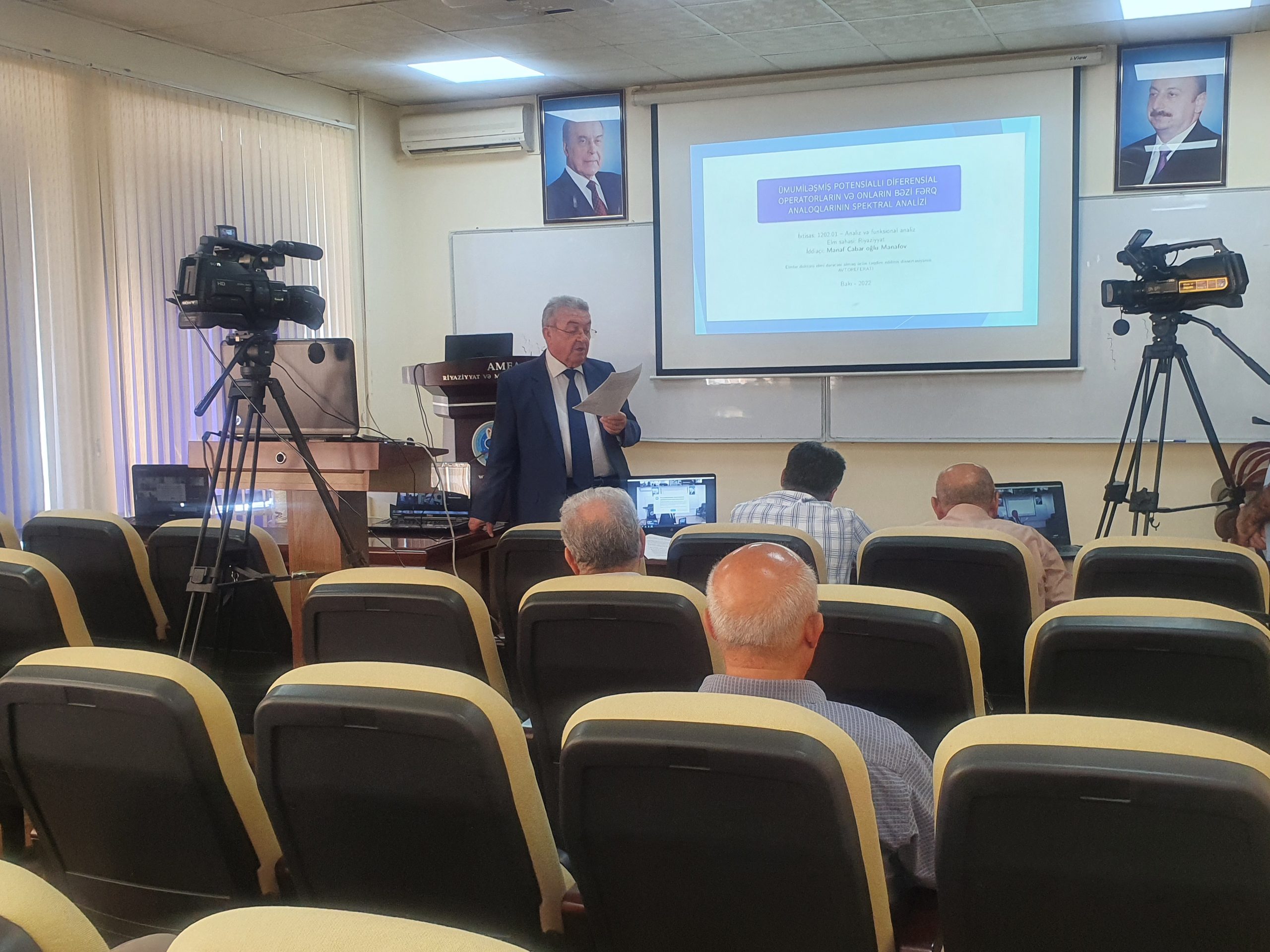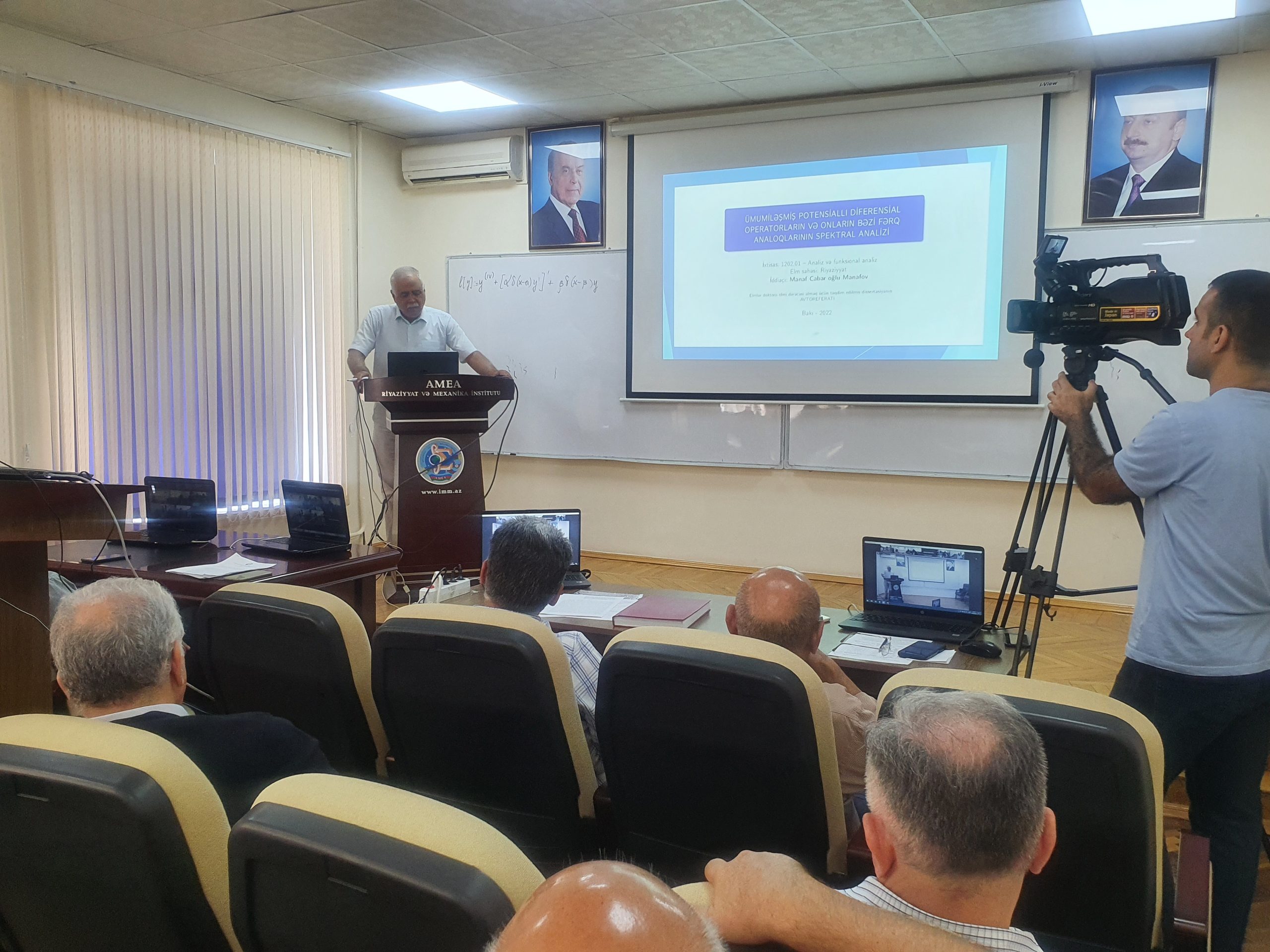 AMEA Riyaziyyat və Mexanika İnstitutunun ED 1.04 dissertasiya şurasının nəzdindəki elmlər və fəlsəfə doktoru dissertasiyalarının müzakirəsi üzrə Elmi seminarın 12 sentyabr 2022-ci il tarixli, saat 10:30 iclasında Manaf Cabar oğlu Manafovun “Ümumiləşmiş potensiallı diferensial operatorların və onların bəzi fərq analoqlarının spektral analizi” mövzusunda 1202.01-Analiz və funksional analiz ixtisasında riyaziyyat üzrə elmlər doktoru dissertasiya işinin müzakirəsi keçirilmişdir.