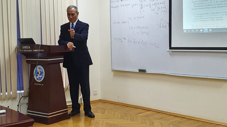 Bu gün AMEA-nın Riyaziyyat və Mexanika İnstitutunda növbəti Ümuminstitut seminarı keçirilib. Ümuminstitut seminarında “Optimal idarəetmə” şöbəsinin baş elmi işçisi, fizika-riyaziyyat elmləri doktoru, professor Telman Məlikov “Hamar olmayan və cırlaşmaya malik variasiya məsələlərində ekstremum üçün zəruri şərtlər və yeni sinif məxsusi idarəedicinin optimallığı üçün zəruri şərtlər”mövzusunda məruzə etdi.
