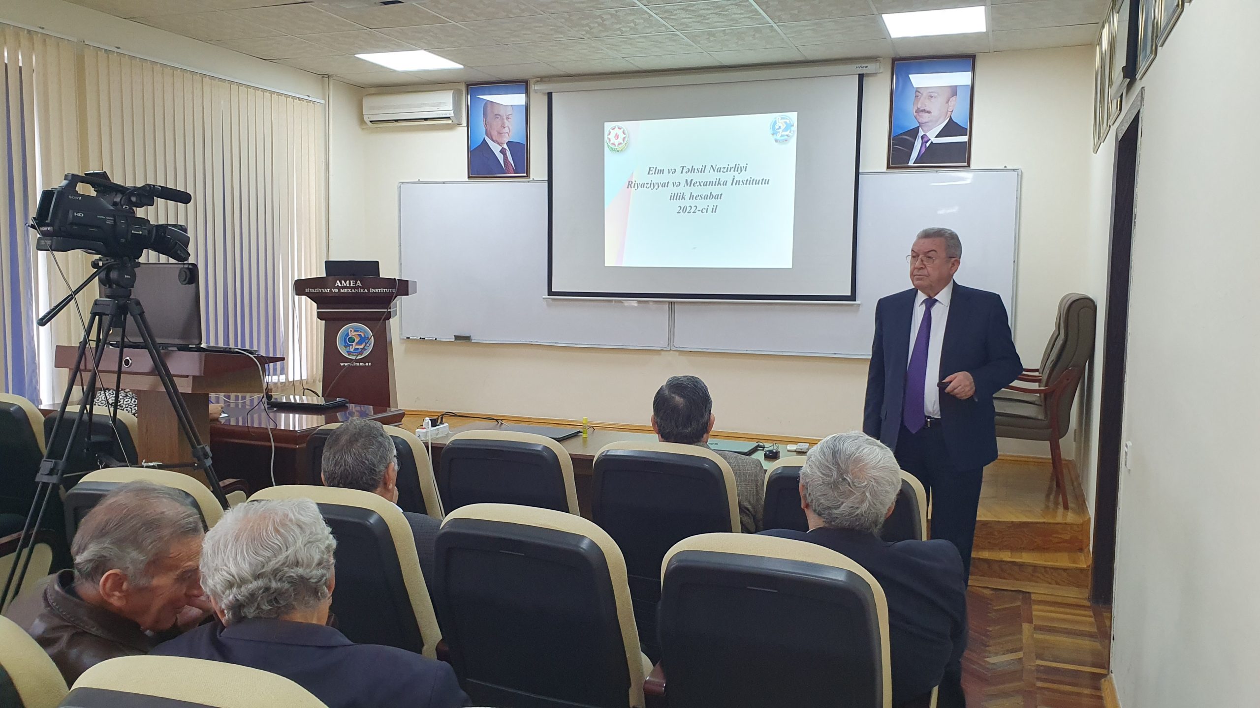 İnstitutun rəhbəri akademiyanın müxbir üzvü, professor Misir Mərdanov təmsil etdiyi müəssisədə cari ildə aparılan elmi-tədqiqat işləri, nəşr olunmuş məqalələr, tətbiq olunan işlər, beynəlxalq əlaqələr, keçirilən tədbirlər və konfranslar barədə məlumat verdi.