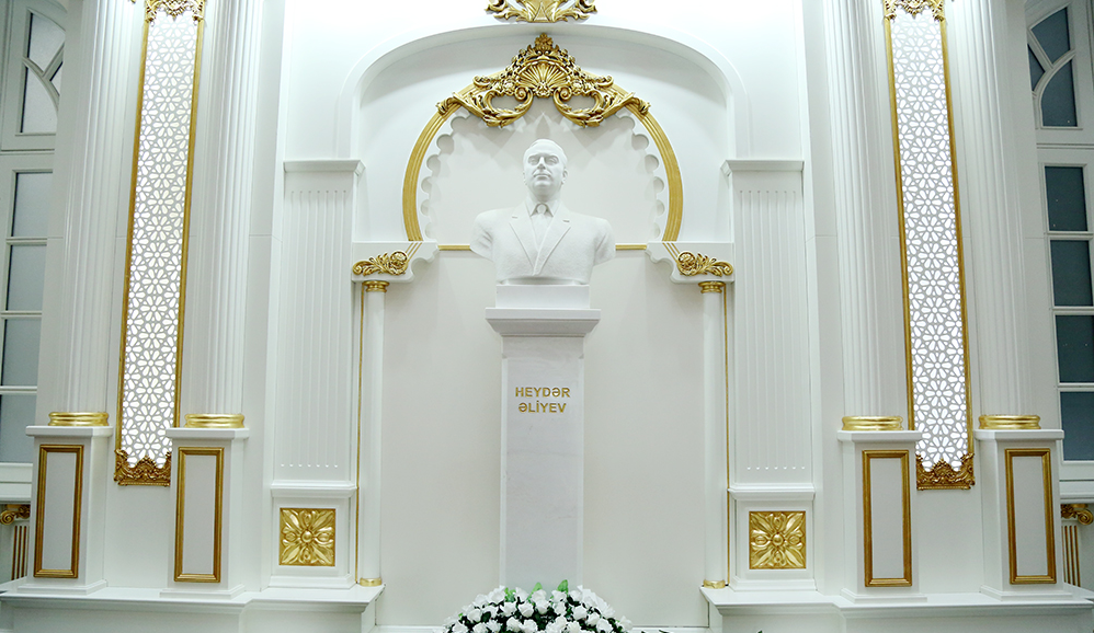 Konfransdan öncə Ulu Öndər Heydər Əliyevin AMEA-nın Rəyasət Heyətinin binasında yerləşən büstü önünə tər güllər düzülüb.