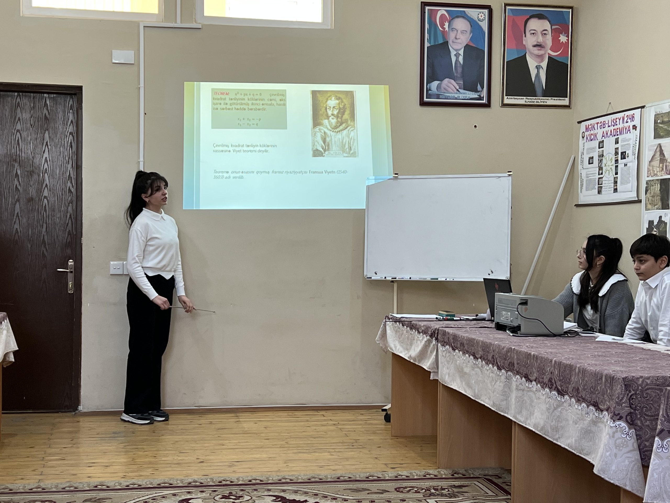 Tədbirdə VII, VIII, IX, sinif şagirdlərinin təqdimatında “Qızıl nisbət”, “Ərəb rəqəmləri”, “Kub tənliklər üçün Viyet teoremi”, “Rəqəmlərin sirri” və “Bölünmə əlamətləri” mövzularında elmi və elmi populyar məruzələr dinlənilib.