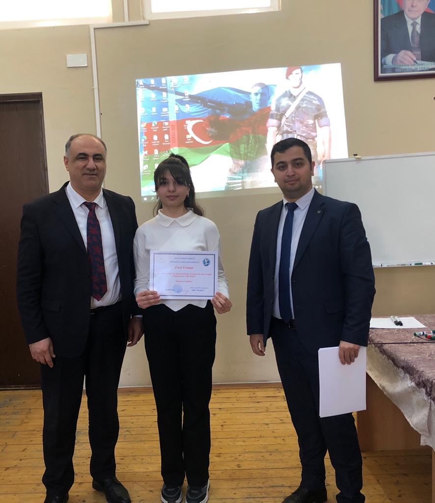 Sonra “Kiçik akademiya”nın rəhbəri, məktəbin tarix müəllimi Şücaət Qafarova istedadlı şagirdləri və onların mövzularını təqdim edib.
