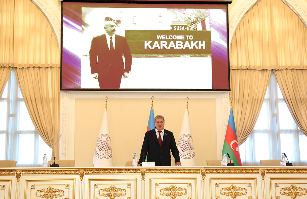 Sonra AMEA-nın Fəlsəfə və Sosiologiya İnstitutunun baş direktoru, fəlsəfə elmləri doktoru İlham Məmmədzadə “Qələbənin fəlsəfəsi, Zəfərin təntənəsi və Böyük Qayıdışın reallıqları”, AMEA-nın A.A.Bakıxanov adına Tarix İnstitutunun şöbə müdiri, tarix üzrə fəlsəfə doktoru Cəbi Bəhramov “Azərbaycan Respublikasının Prezidenti İlham Əliyevin Qərbi Azərbaycana qayıdış strategiyası”, AMEA-nın Nəsimi adına Dilçilik İnstitutunun baş direktoru, filologiya elmləri doktoru Nadir Məmmədli “Azərbaycan Respublikasının Prezidenti İlham Əliyevin dil siyasəti və dövlət dilinin inkişafına dəstəyi” və AMEA-nın Nizami adına Ədəbiyyat İnstitutunun şöbə müdiri, filologiya elmləri doktoru Elnarə Akimova “Azərbaycan Respublikasının Prezidenti İlham Əliyevin ədəbiyyat siyasəti və ədəbiyyatda bədii obrazı” mövzularında məruzələrlə çıxış ediblər. Məruzələrdə Azərbaycan Respublikasının Prezidenti İlham Əliyevin elm, dil və ədəbiyyat siyasəti, elm adamlarına qayğısı, hərtərəfli fəaliyyət istiqamətlərindən söz açılıb.