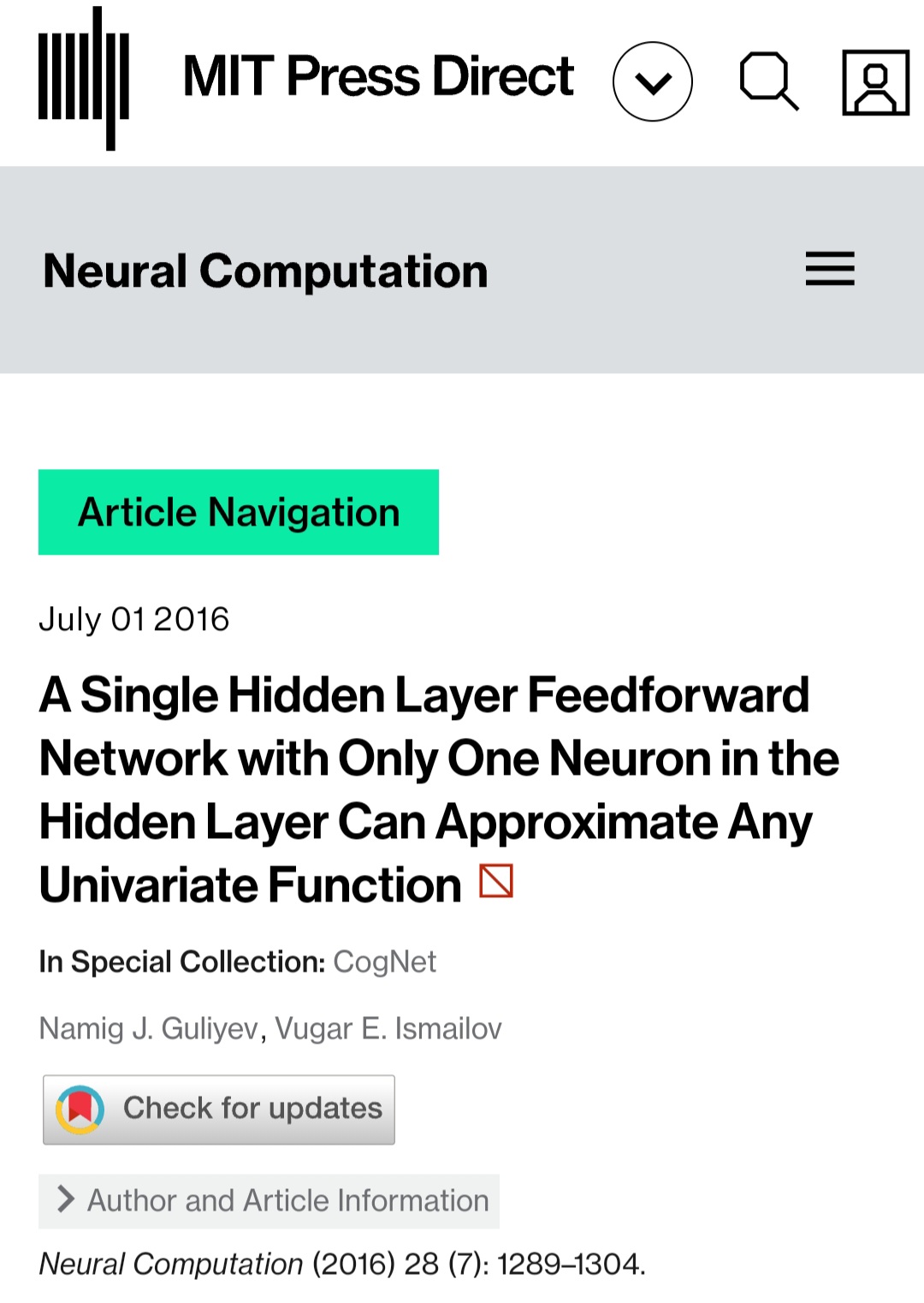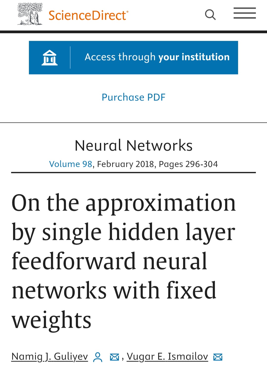 Azərbaycan Respublikası Elm və Təhsil Nazirliyi Riyaziyyat və Mexanika institutunun “Funksiyalar nəzəriyyəsi” şöbəsinin müdiri professoru Vüqar İsmayılov və “Funksional analiz” şöbəsinin aparıcı elmi işçisi f.-r.e.n. Namiq Quliyevin 2018-ci ildə Neural Networks və 2016-cı ildə Neural Computation jurnallarında çap etdirdikləri birgə məqalələr yüksək qiymətləndirilmişdir. Amerikanın Memfis universitetinin professoru George Anastassiou öz «Approximation of Brownian Motion on Simple Graphs, Mathematics 2023, 11(20), 4329» məqaləsində Vüqar İsmayılov və Namiq Quliyevin Neural Networks jurnalındakı məqaləsini ötən əsrin məşhur klassik məqalələri ilə yanaşı “seminal work” (əsas, başlıca iş) adlandırmışdır. Amerikanın Texas Universitetinin professoru Tan Bui-Thanh isə Oxford Universiteti nəşriyyatında çap edilən «A unified and constructive framework for the universality of neural networks» işində Vüqar İsmayılov və Namiq Quliyevin Neural Computation jurnalındakı məqaləsinin əsas nəticəsini «striking result» (heyrətamiz nəticə) adlandırmışdır.