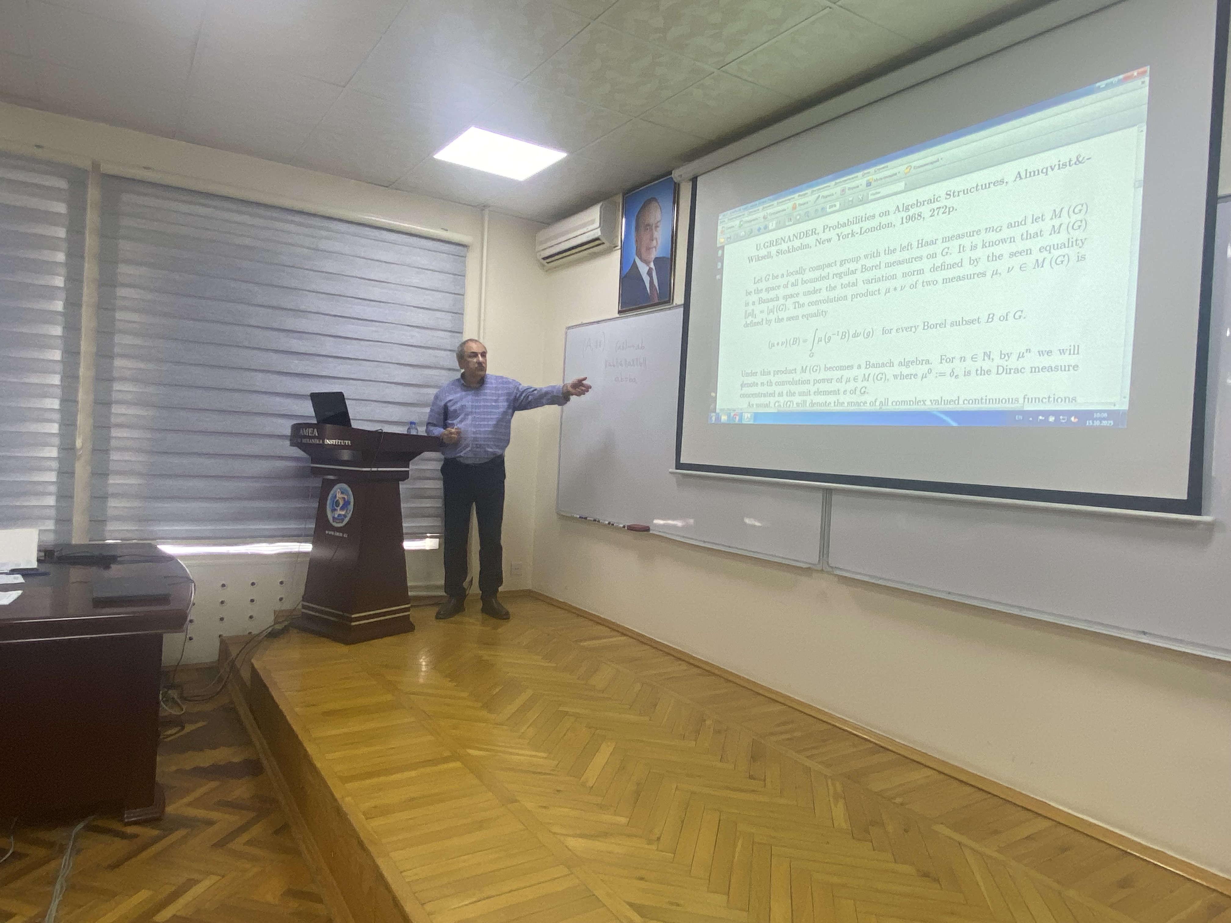 Məruzədə lokal kompakt qruplar üzərində təyin edilmiş ölçülərin iterasiyalarının asimptotik xassələri ətraflı şəkildə izah olunub. Professor Heybətqulu Mustafayev bu sahədə aparılmış tədqiqatların tarixi aspektlərinə də toxunaraq, müxtəlif dövrlərdə riyaziyyatçılar tərəfindən ölçülərin ergodik xüsusiyyətləri ilə bağlı əldə olunmuş əsas nəticələri seminar iştirakçılarına təqdim edib.