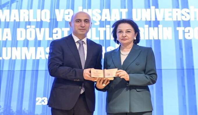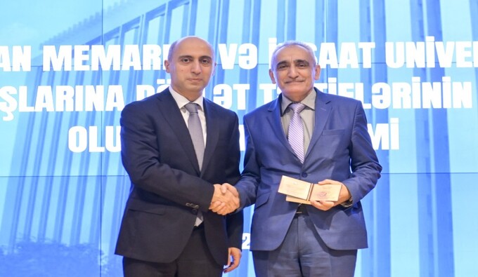 Azərbaycan Memarlıq və İnşaat Universitetinin (AzMİU) 50 illik yubileyi münasibətilə ali məktəbin əməkdaşlarına Prezident İlham Əliyevin Sərəncamı ilə verilmiş yüksək dövlət təltifləri təqdim edilib.